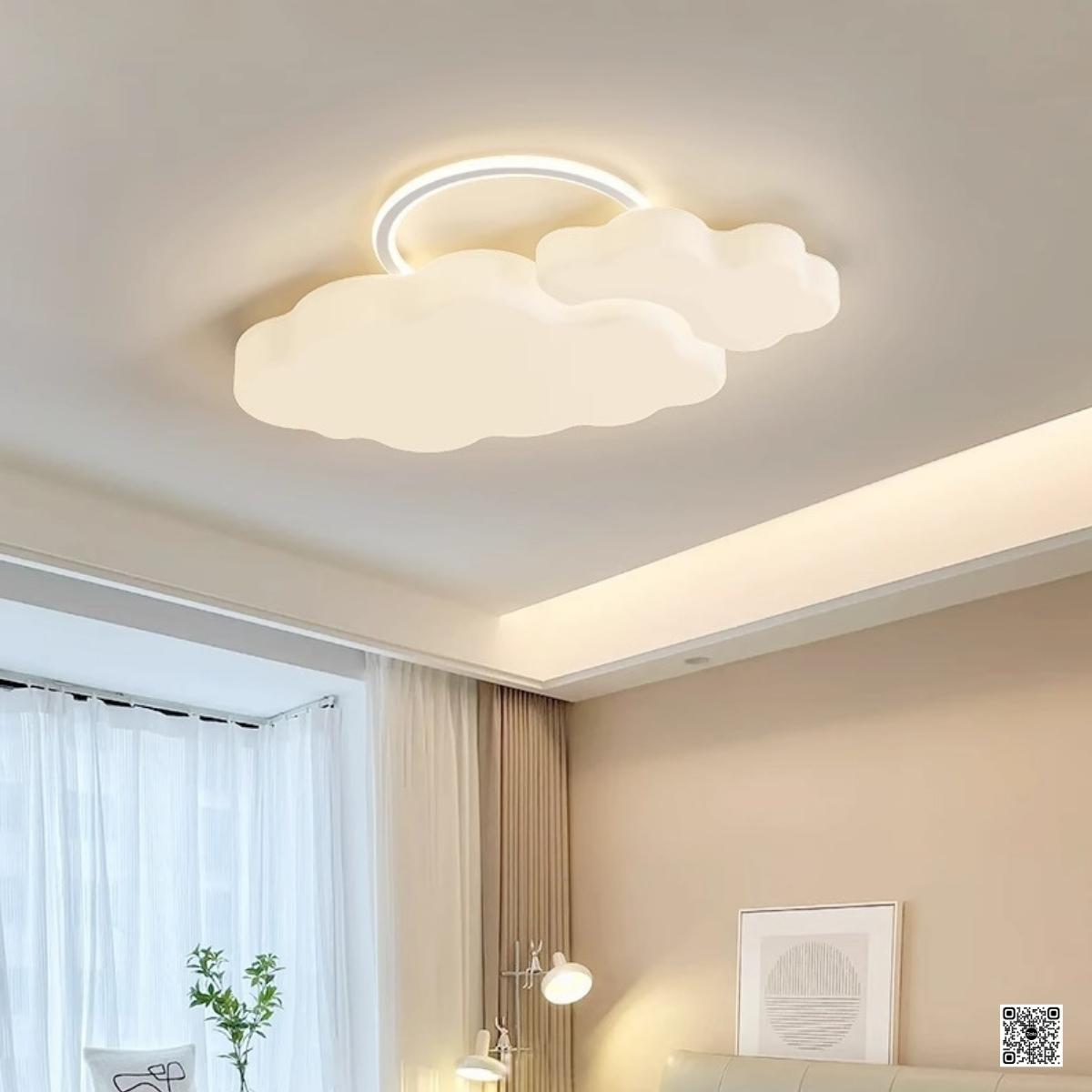 Không phải là hình tròn hay vuông quen thuộc, ML-902 nổi bật với tạo hình hai đám mây tròn trịa lồng ghép mềm mại, kết hợp cùng vòng LED phát sáng bao quanh, tạo hiệu ứng ánh sáng trôi bồng bềnh, như trần nhà đang mang cả bầu trời nhỏ.