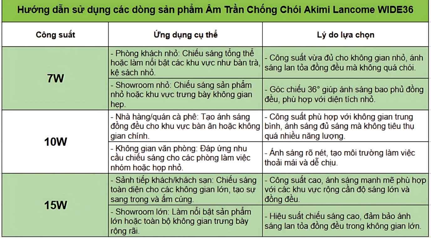 7. Hướng dẫn sử dụng các dòng sản phẩm Âm Trần Chống Chói Akimi Lancome WIDE36