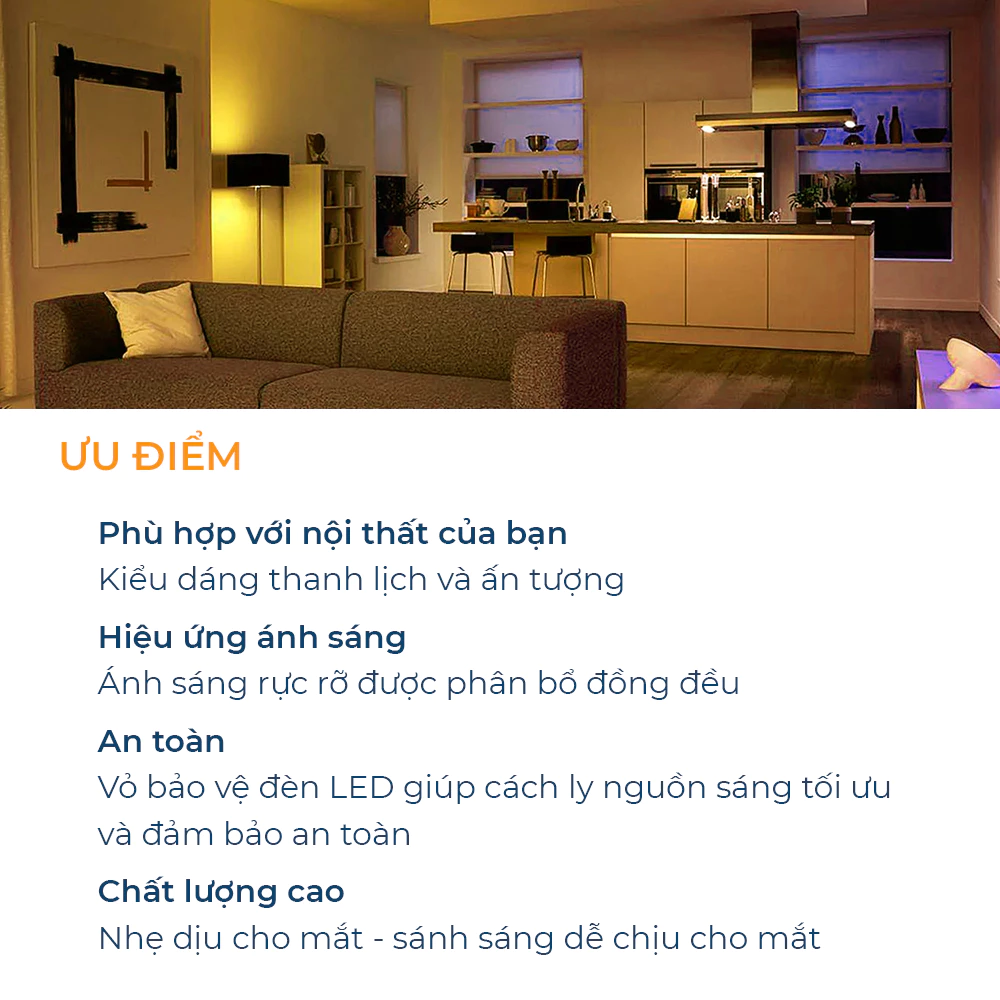 Cho cảm giác ánh sáng rất êm dịu, thích hợp với phòng khách, phòng ngủ hoặc showroom