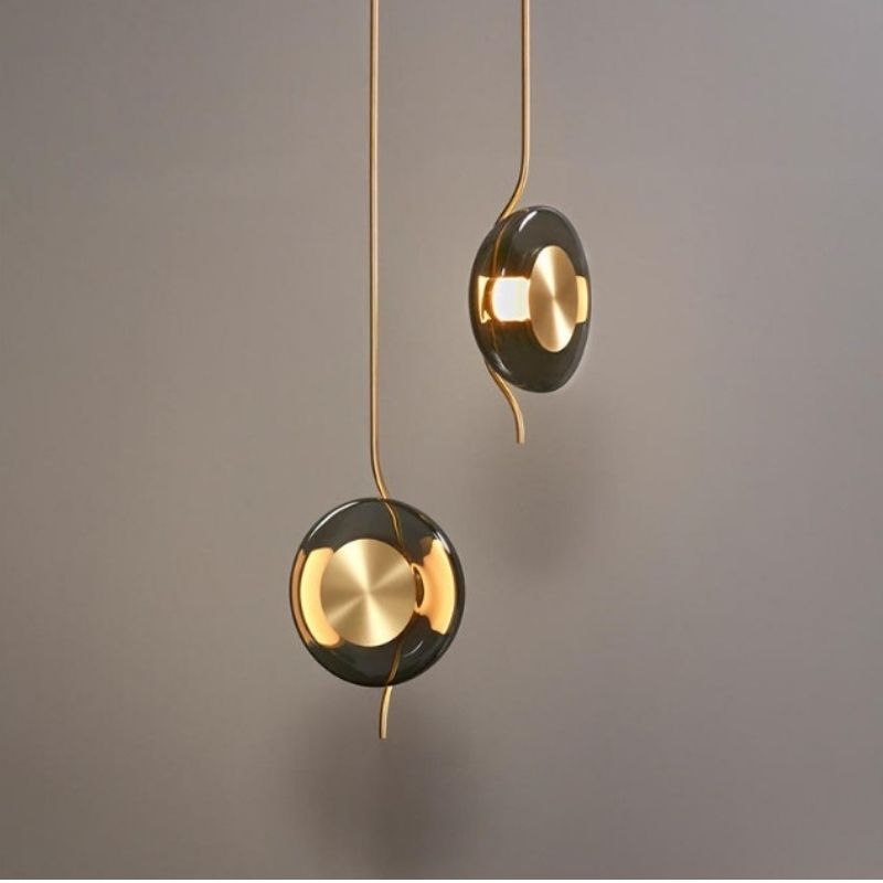 Chụp đèn kính màu khói xanh ánh xám, tạo chiều sâu ánh sáng và cảm giác mềm mại cho không gian.