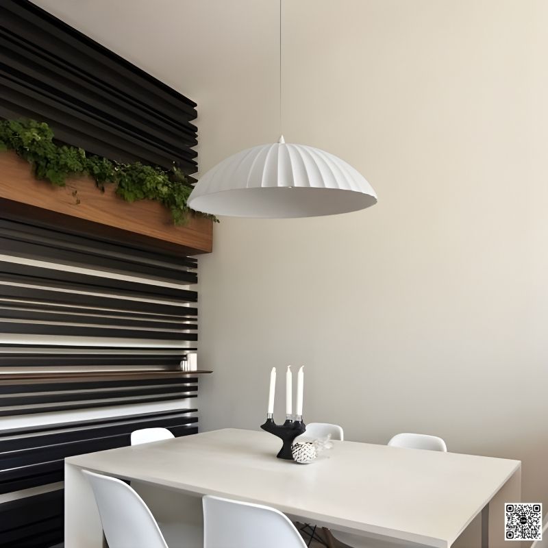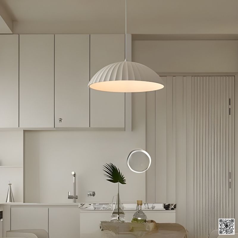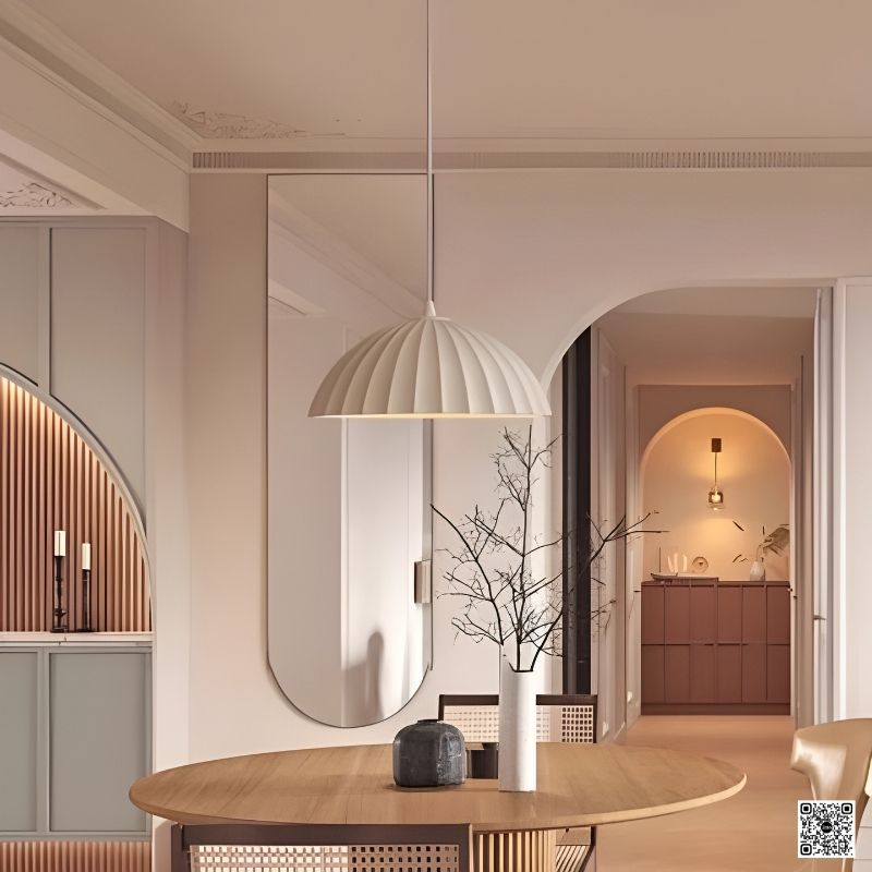 Form đèn nửa vòm mềm mại, giúp ánh sáng lan tỏa đều khắp khu vực bên dưới.