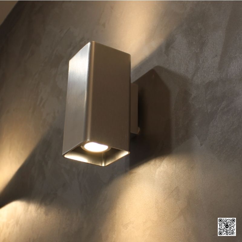 Hai đầu chiếu sáng trên – dưới, tạo hiệu ứng ánh sáng đối xứng sang trọng, nhấn mạnh chiều cao bức tường.