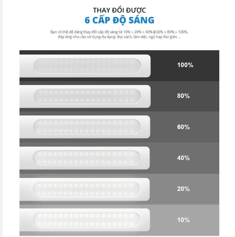Điều khiển cảm ứng. Đổi 6 cấp độ sáng 0% - 100% - đáp ứng mọi nhu cầu ánh sáng.