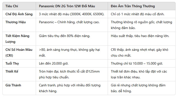 4. So Sánh Đèn LED Âm Trần Panasonic DN 2G Tròn 12W Đổi Màu Với Các Sản Phẩm Khác 5. Lợi Ích Khi Chọn Đèn LED Âm Trần Panasonic DN 2G Tại TuyetLights 5.1. Sản Phẩm Chính Hãng, Chất Lượng Cao