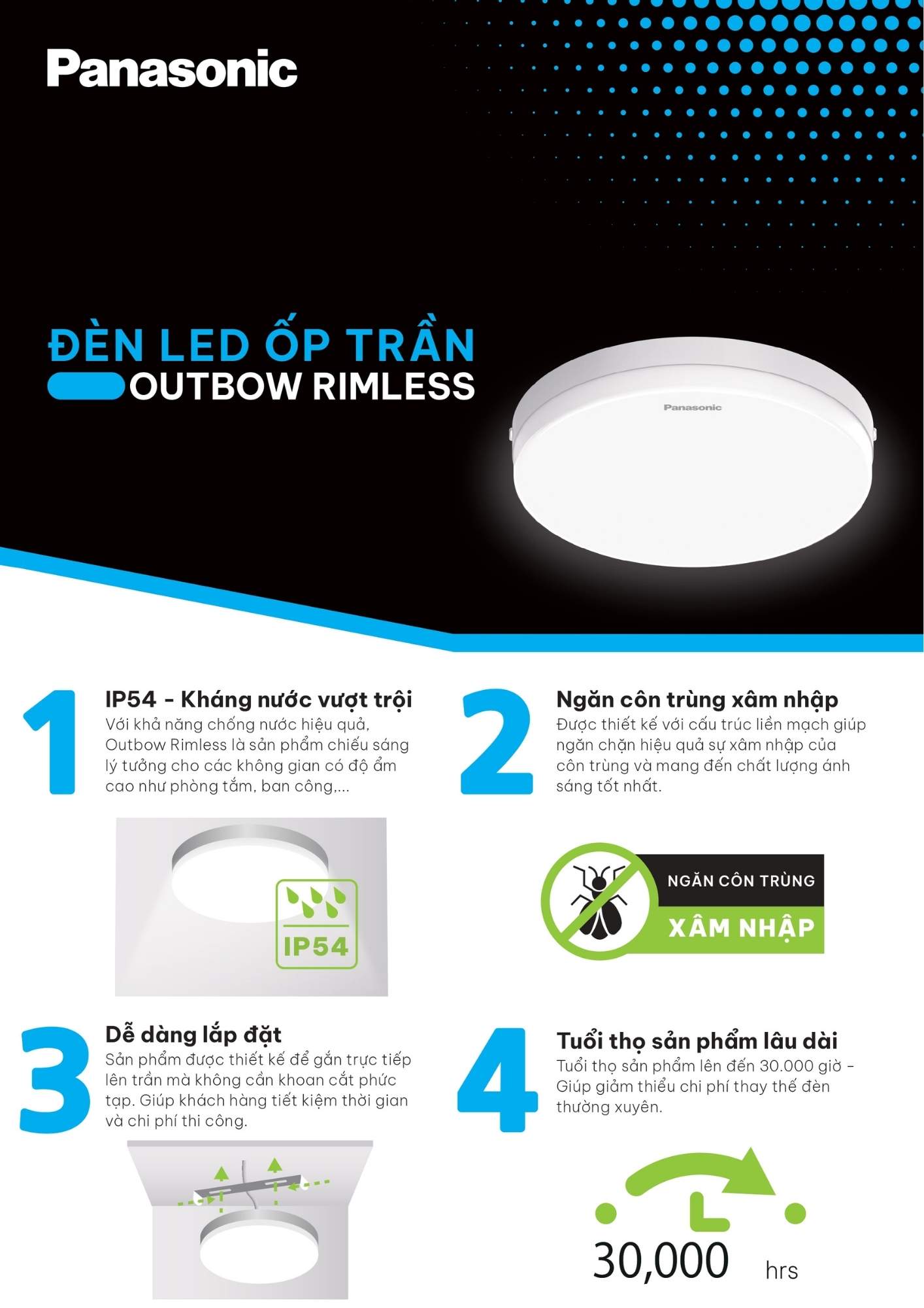 Với thiết kế liền mạch, công nghệ đổi màu 3 chế độ linh hoạt và khả năng chống nước – chống côn trùng hiệu quả, Panasonic NNV50137WE1A 12W là giải pháp chiếu sáng hiện đại cho mọi không gian trong nhà. Tuổi thọ lên tới 30.000 giờ tương đương 10 năm sử dụng, mang lại trải nghiệm chiếu sáng ổn định và tiết kiệm lâu dài. 👉 Xem ngay Video thực tế sản phẩm đèn Ốp trần Tràn Viền