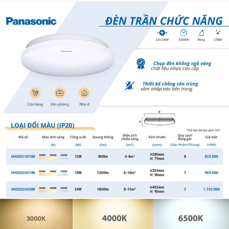 Mua đèn led ốp trần Panasonic chính hãng, đến Tuyết Lights