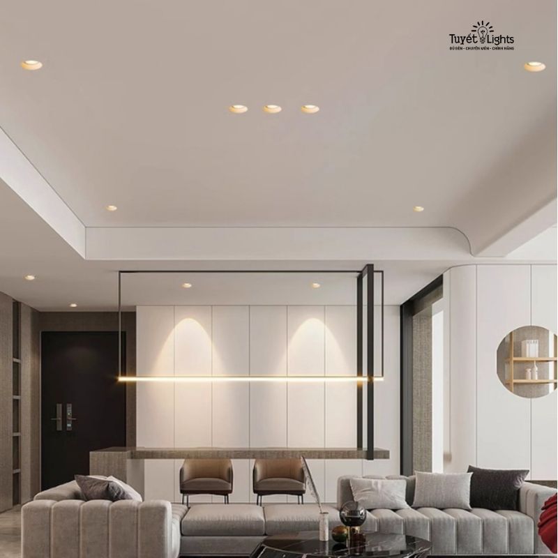 Nhà ở cao cấp: spotlight cho phòng khách, hành lang, phòng ngủ.