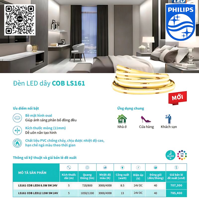 Bạn đang hoàn thiện không gian sống, cửa hàng hay công trình thiết kế nội thất cao cấp? Một hệ thống ánh sáng tinh tế, liền mạch và tiết kiệm điện chính là mảnh ghép quan trọng để tô điểm phong cách. Dây LED Philips LS161 COB 8.5W - dài 5m, chính là lựa chọn hoàn hảo giúp tôn vẻ đẹp cho từng chi tiết.