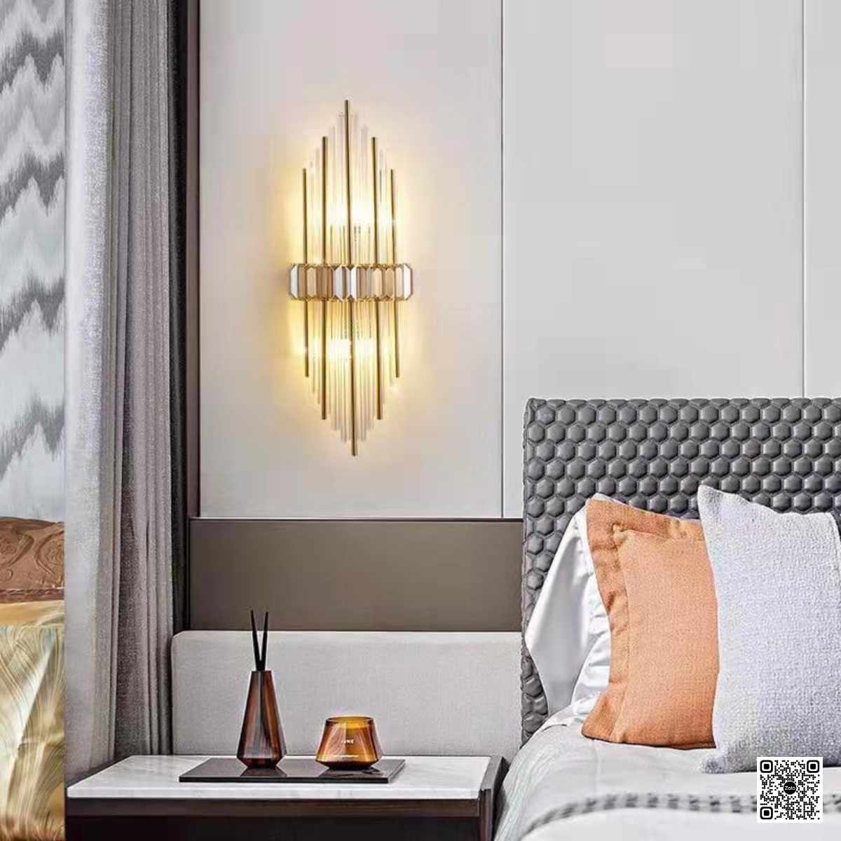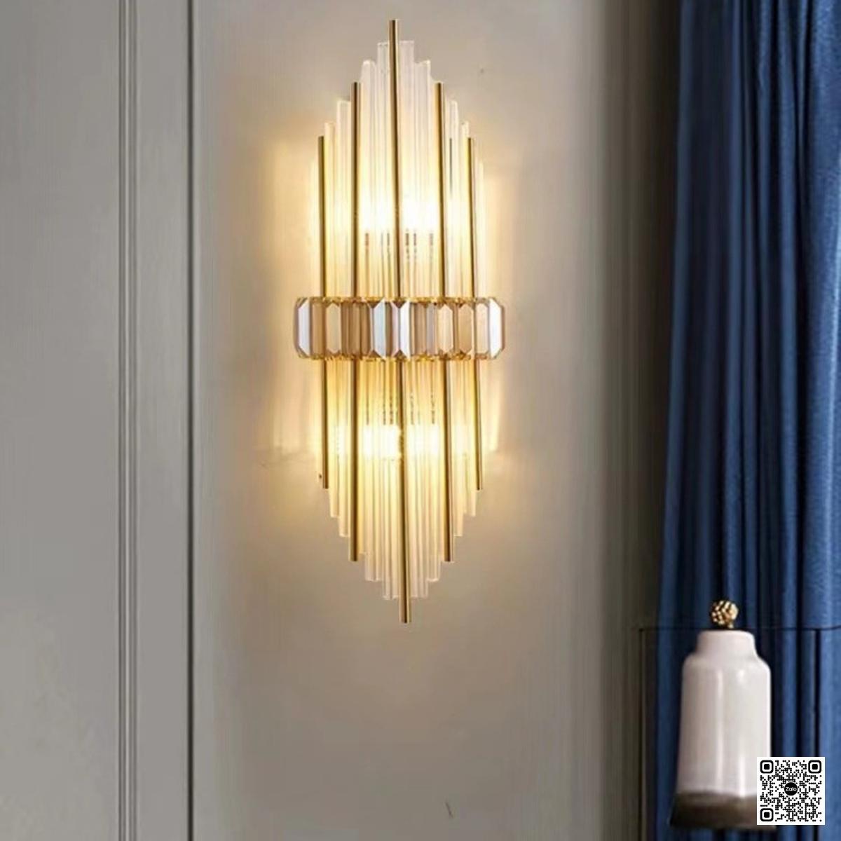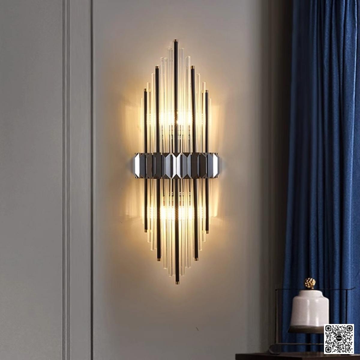 Cả hai mẫu đều có thiết kế dạng đèn tường trụ đứng, với phần thân chính là những thanh pha lê trong suốt được xếp lớp đều tay theo chiều dọc. Khi ánh sáng LED E14 chiếu qua, tạo ra hiệu ứng lung linh đa chiều – rất giống với ánh sáng trong các khách sạn 5 sao.