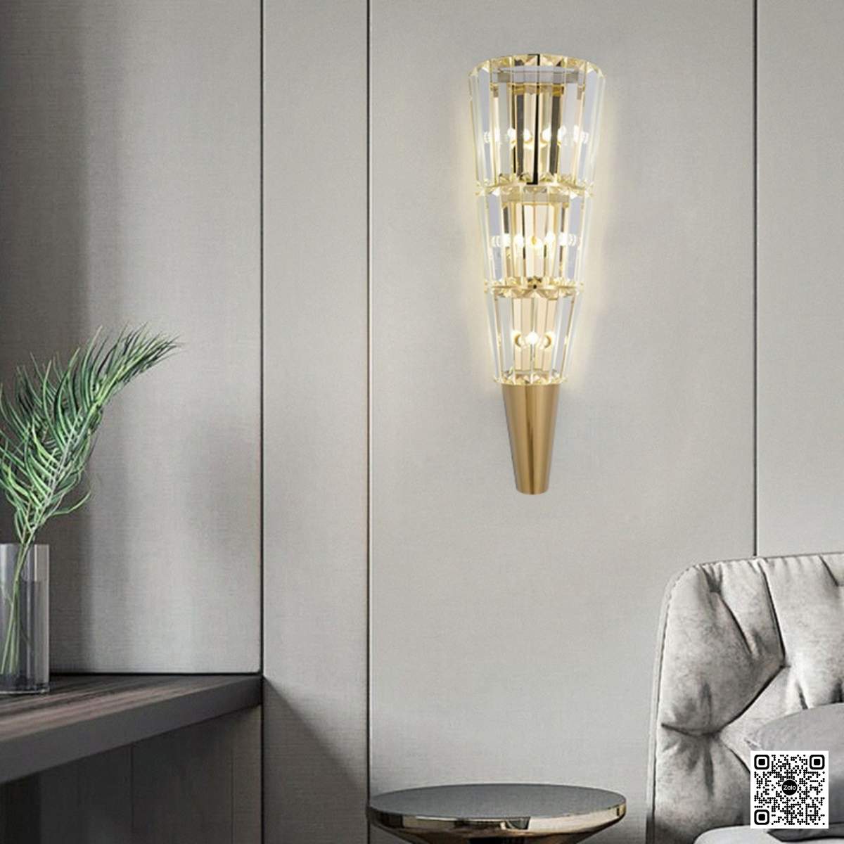 Nếu bạn đang tìm một mẫu đèn tường pha lê có thiết kế khác biệt, ánh sáng lung linh chính là lựa chọn hoàn hảo. Với kiểu dáng giống như chiếc ly pha lê úp ngược, mẫu đèn này mang đến hiệu ứng ánh sáng cực kỳ cuốn hút, phù hợp cho các không gian cần điểm nhấn thẩm mỹ mạnh mẽ.