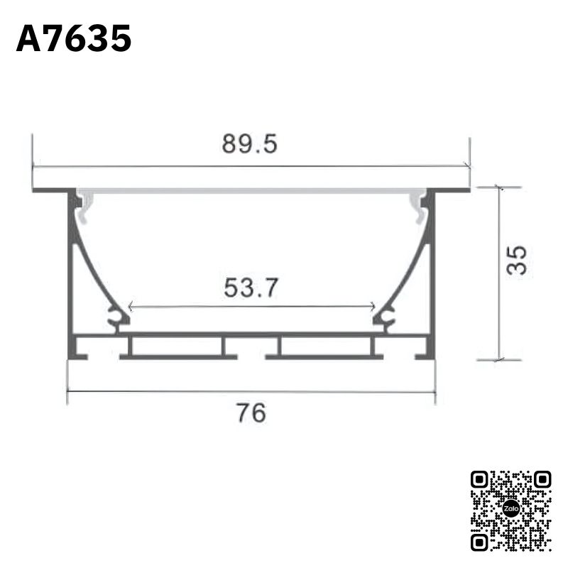 A7635 là một trong những profile thanh nhôm định hình đề cấp nhất hiện nay của Tuyết Lights, thiết kế gắn âm dài 3m, mặt sáng siêu rộng đến 53mm.