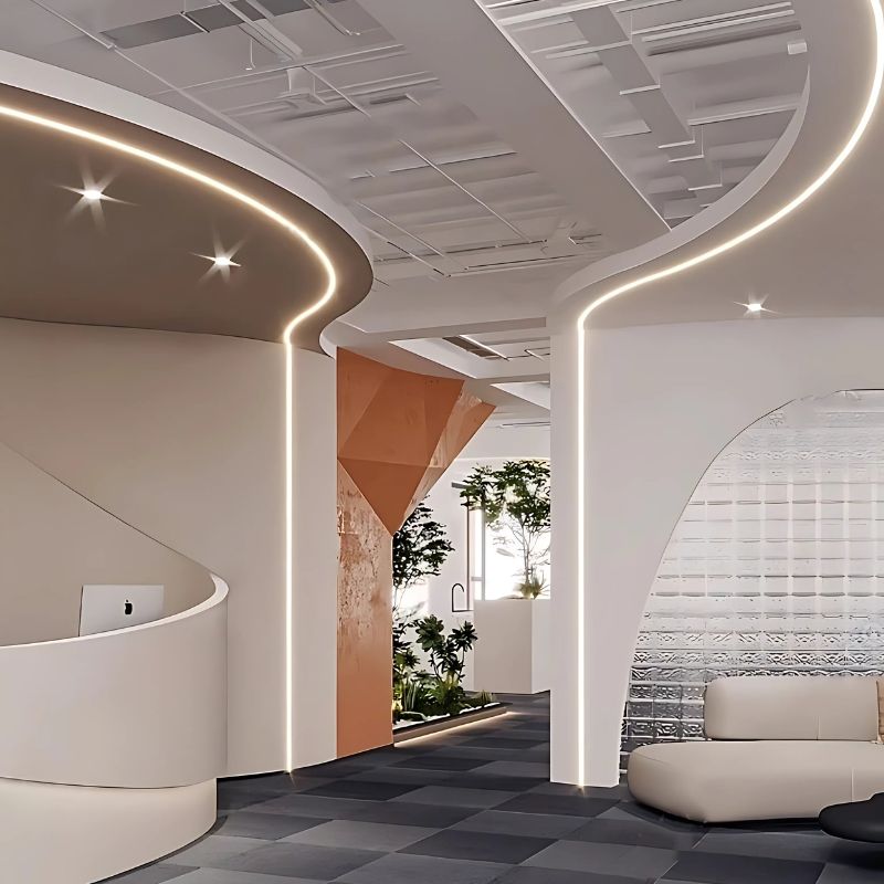 Vách cong, tường bo góc: Tăng chiều sâu bằng ánh sáng liền mạch