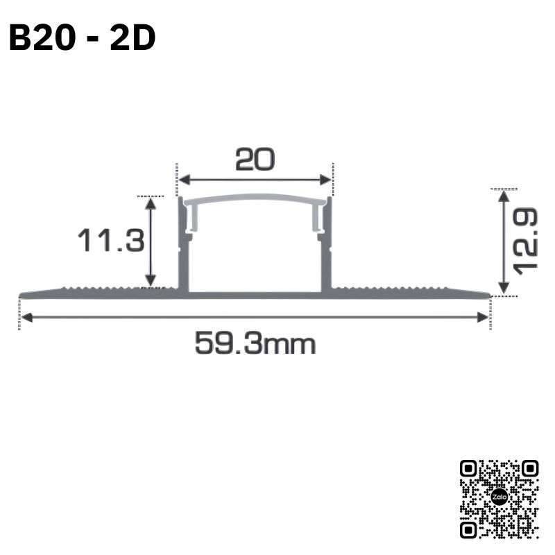 B20-2T là dòng thanh nhôm giấu viền uốn cong dài 1.5m, mặt sáng 20mm, đặc biệt có 2 tai bám giúp thi công LED cong chắc chắn, đồng đều, không bị cong vềnh theo thời gian.